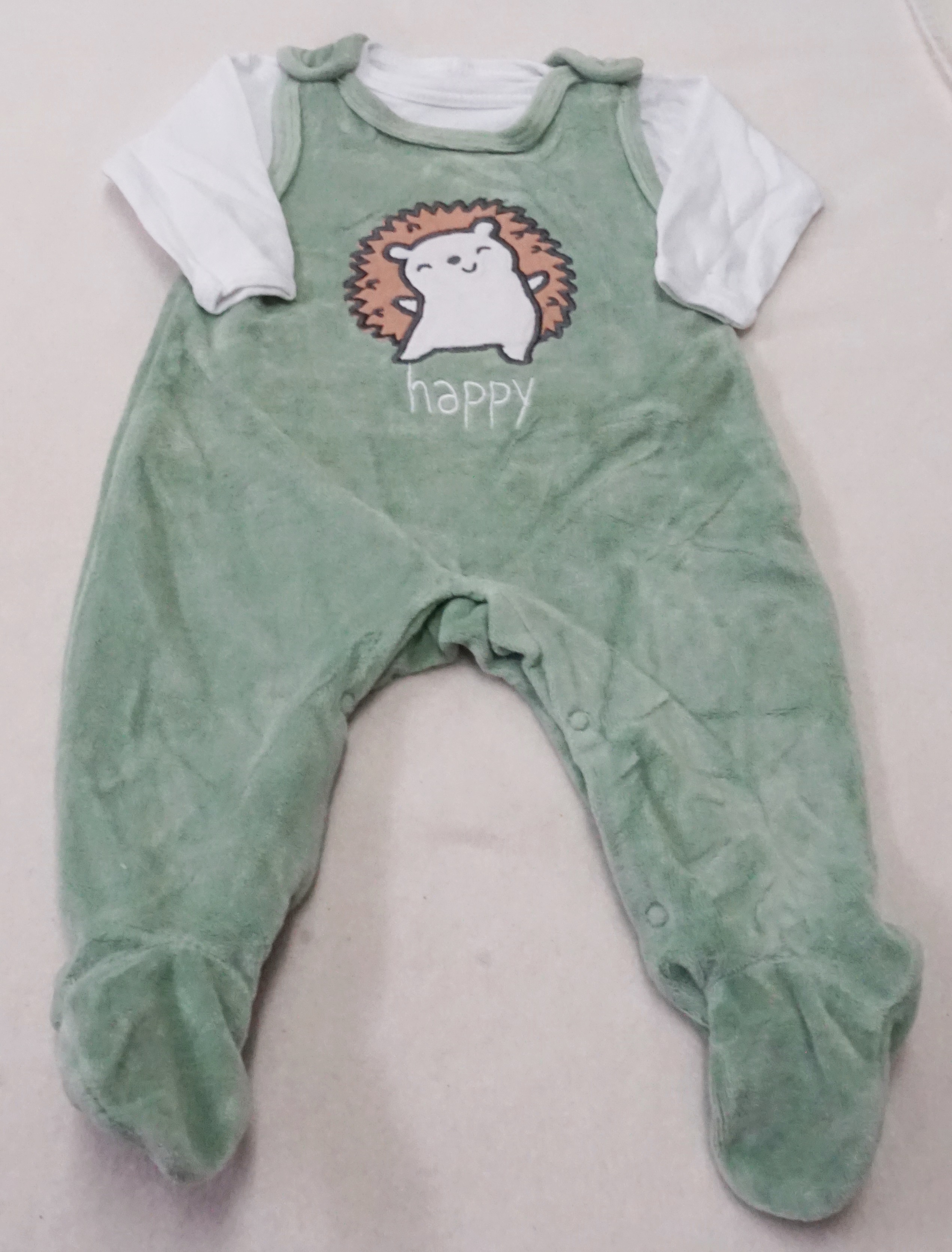 Nicki Stramplermit Druckknöpfen an den Schultern und im Windelbereich, mit Motiv vorne, mit Langarmshirt mit einem Druckknopf vorne,